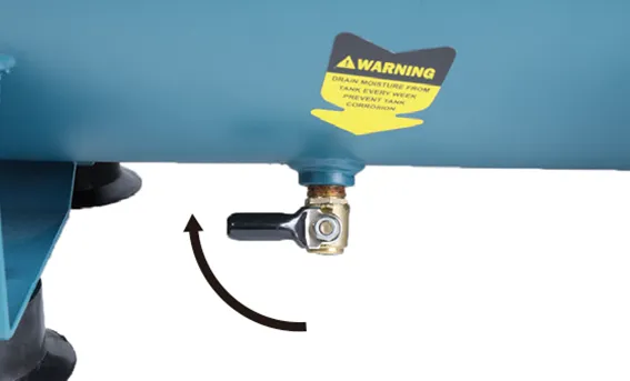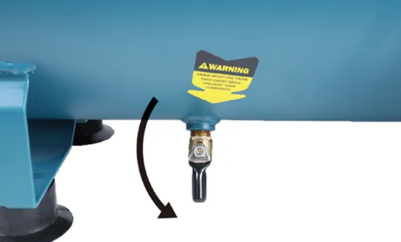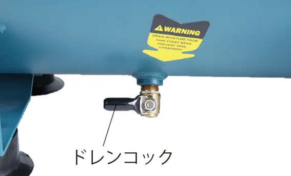 • ご使用後は、ドレインコックを開き、エアタンク内の圧縮空気、水を排出してください。