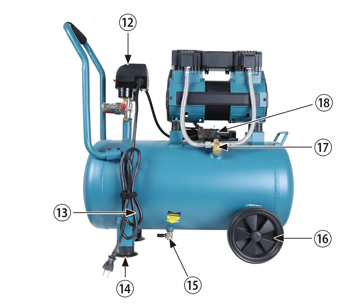 • エアタンク内の圧縮空気を抜く時は、排出口に物を置いたり、身体を近づけたりしないでください。