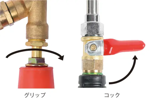 • 突然の噴霧を防ぐため、エンジン始動時は、レバーコックを閉じた状態にして行ってください。