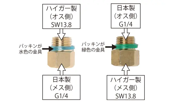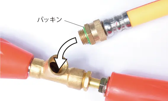• 使用前に接続部のパッキンの脱落がないこと、ネジの緩みや欠落した部品などがないこと、ホースに亀裂、摩耗、破損のないこと等、各部に異常がないことを確認してください。