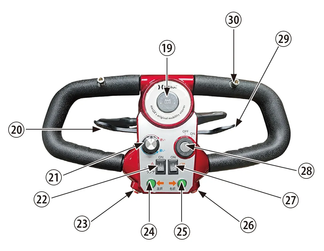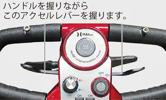 しっかりとハンドルを握り、体でバランスをとりながら操作してください。