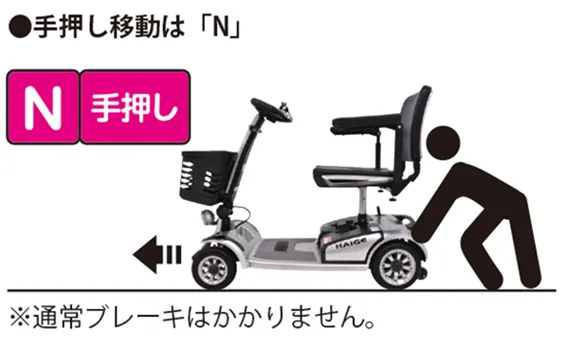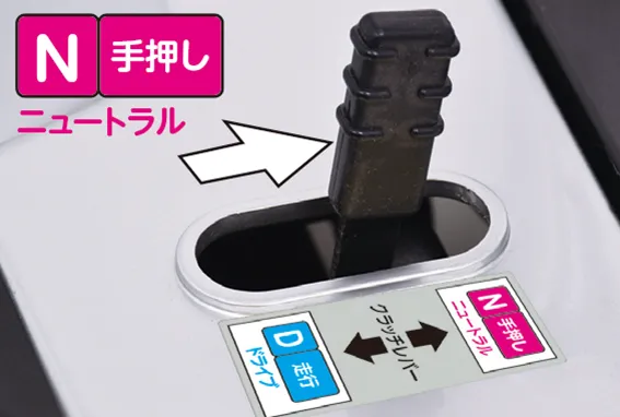 クラッチレバーを「N」にすれば、本体を押して移動することができます。(詳しくは取扱方法の「クラッチレバーの操作」参照)