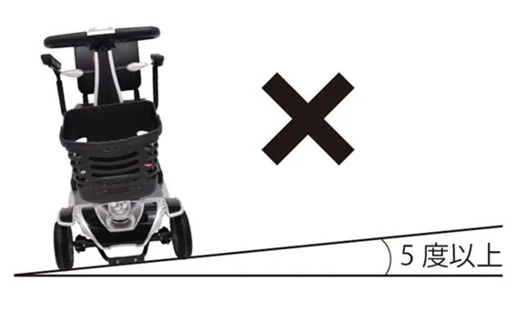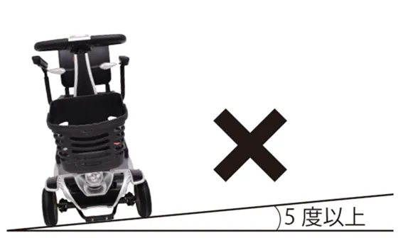転倒する恐れがありますので、傾斜面5度以上でのご使用は避けてください。