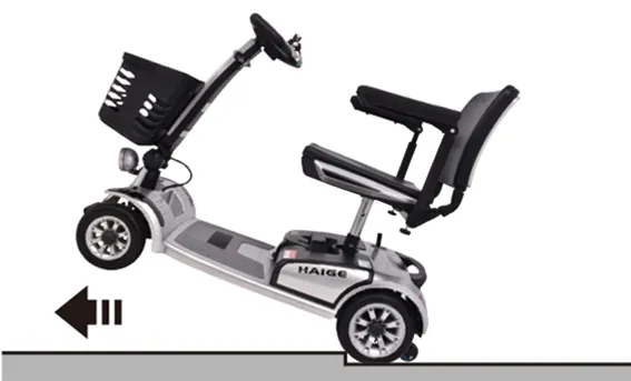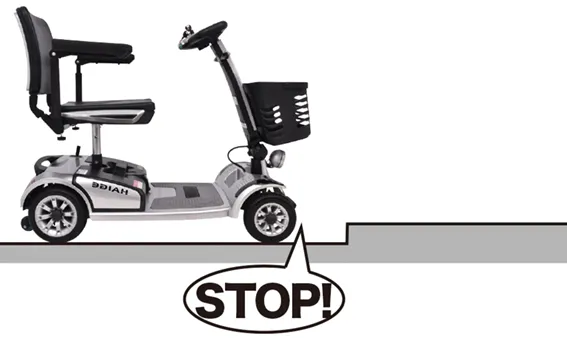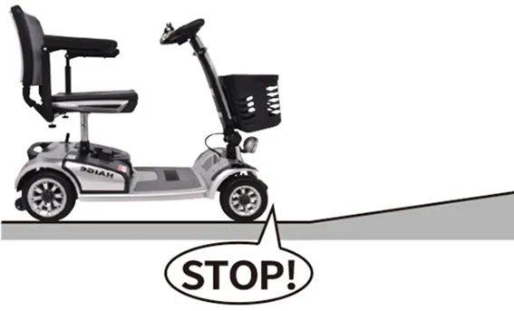 • 斜面を登るときは、十分に注意しながら直進してください。ジグザグ運転、斜め横断や上を向いての運転等はしないでください。