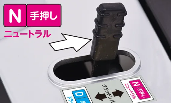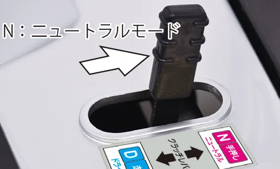 • クラッチレバーを「N」の位置で乗車走行しないでください。下り坂ではブレーキが効かず、重大な事故につながる恐れがあります。
