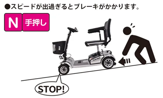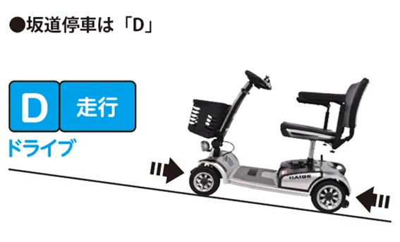 • 坂道では、ちょっとした操作ミスで大事故になる可能性がありますので、十分ご注意ください。
