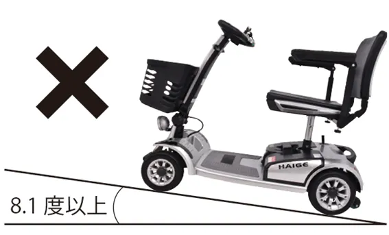 8度を超える急な坂道では使用しないでください。転倒などの危険が高まります。
