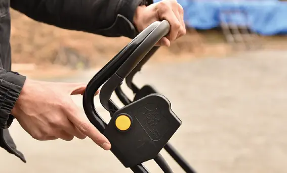 • 後方へ走行する時は、足元及び背後の障害物に十分注意し、転倒したり障害物に挟まれないように運転してください。