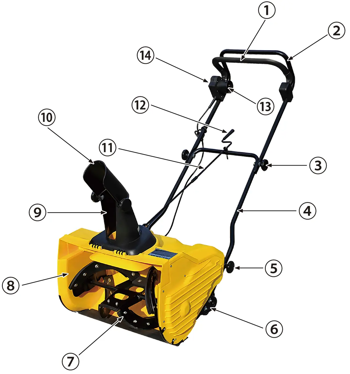 • 極端な気温状況下など、本機の部品が凍ってしまった場合は動かさないでください。もし使用中に本機の部品が凍った場合、延長コードを抜いて本機を止めてください。その後、凍った部分のチェックをして拭取り、確認してから除雪作業を再開してください。