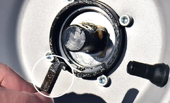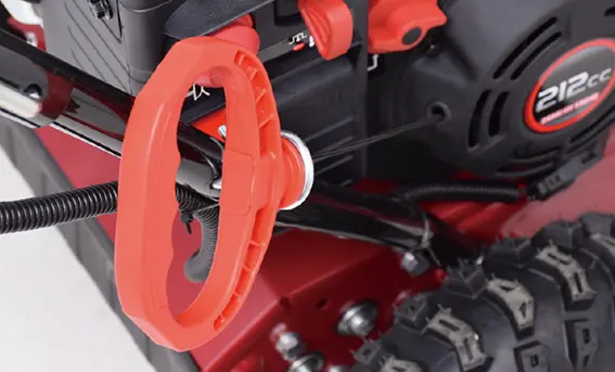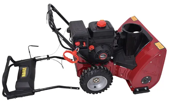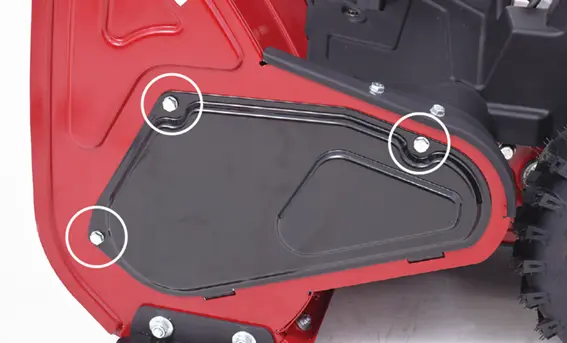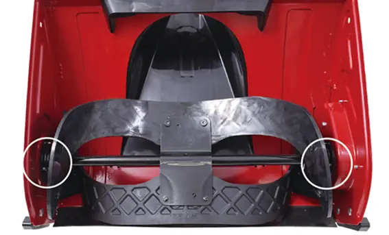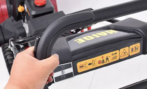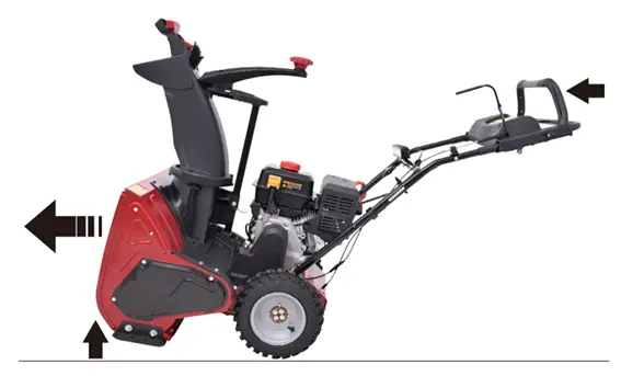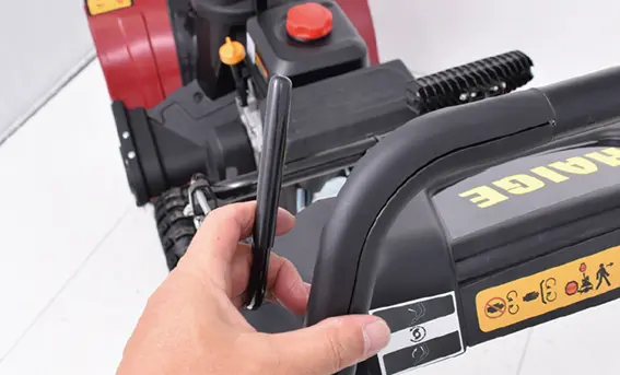 • オーガーハウジングやシュータなどに詰まった雪を取除く時は、エンジンを停止し、誤ってエンジンがかからないように処置したうえで、回転が完全に止まった後に、雪かき棒を使って取除いてください。