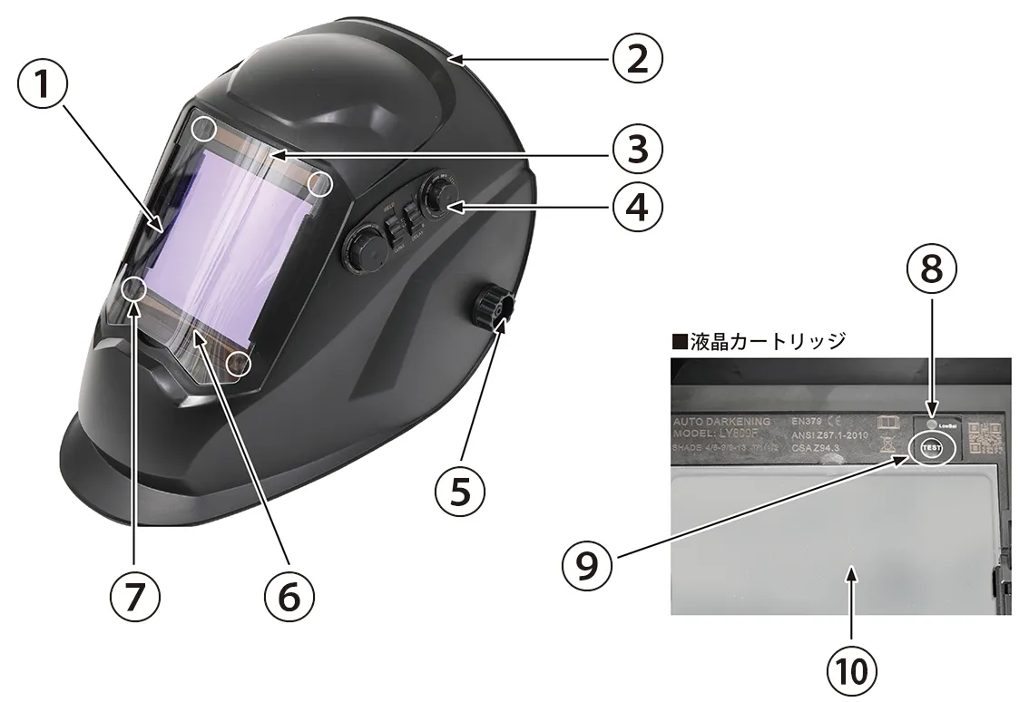 • 本製品がアーク発生時に遮光しない場合は、速やかに溶接作業を中止し、「故障と思ったら」のページをご確認ください。