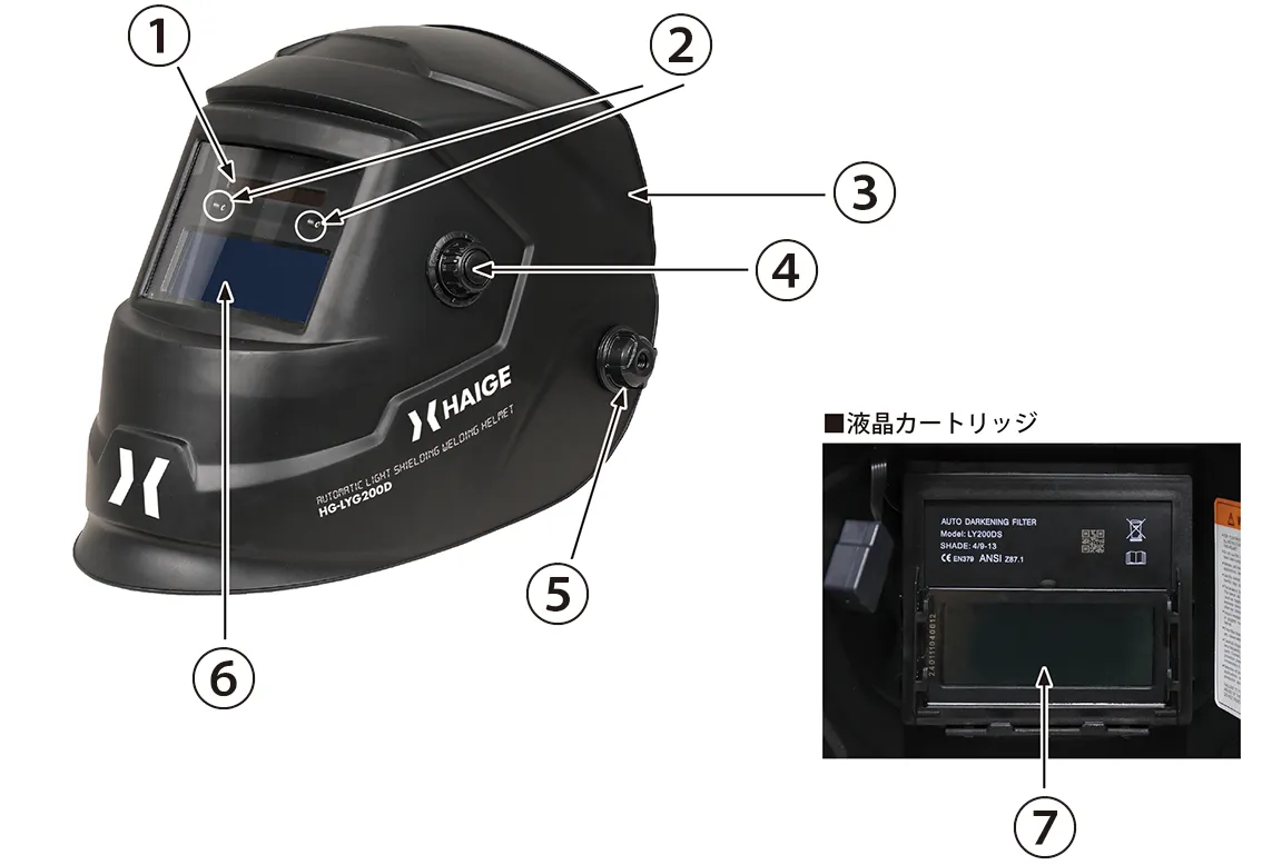 • 本製品がアーク発生時に遮光しない場合は、速やかに溶接作業を中止し、「困ったときの対処法」のページをご確認ください。