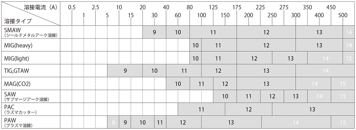 | 遮光度 | DIN8.5~DIN12.5 |