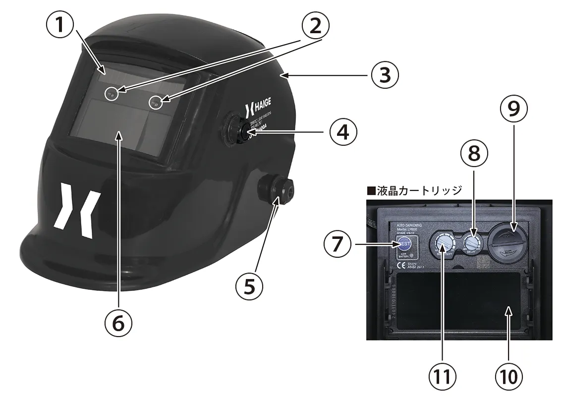 • 本製品がアーク発生時に遮光しない場合は、速やかに溶接作業を中止し、「困ったときの対処法」のページをご確認ください。