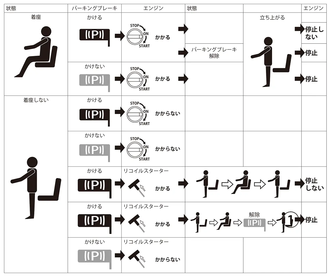 • 危険を感じたり、予測される場合も、必ずエンジンをすぐに停止してください。