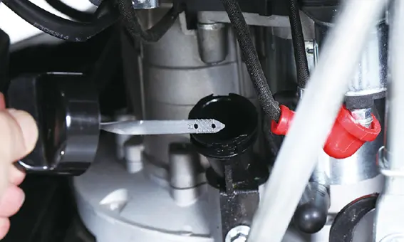 • 給油時、燃料タンクの給油口ギリギリまで給油しないでください。温度上昇によって燃料が膨張し、漏れることがあります。