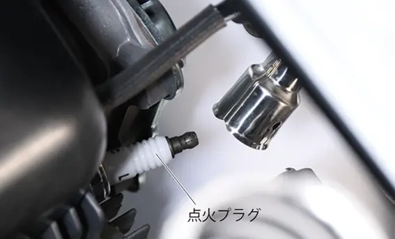 • 点検整備はエンジンが冷えてから行ってください。エンジン本体やマフラー部のほか点火プラグの温度も高くなっており、やけどの恐れがあります。