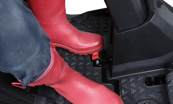 • 傾斜地では一定の速度を保ち、不要な変速レバーの操作は行わないでください。スリップ、転落、転倒、滑落等の危険があります。