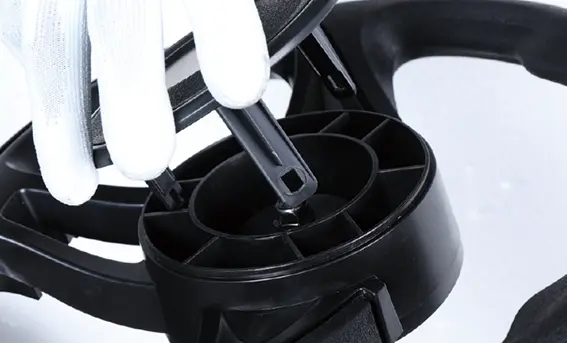 • 長い髪は束ねて帽子、ヘルメットでカバーしてください。