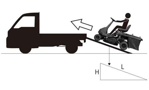 • 勾配10°以上での傾斜地や勾配15°を超えるトラック積載用ブリッジ(ラダー)は大変危険ですので、本機を使用しないでください。