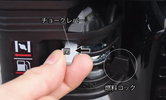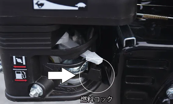 • 自動車で運搬する時は、燃料タンクの燃料を抜き、燃料コックを閉じてください。振動等により燃料が漏れることがあります。