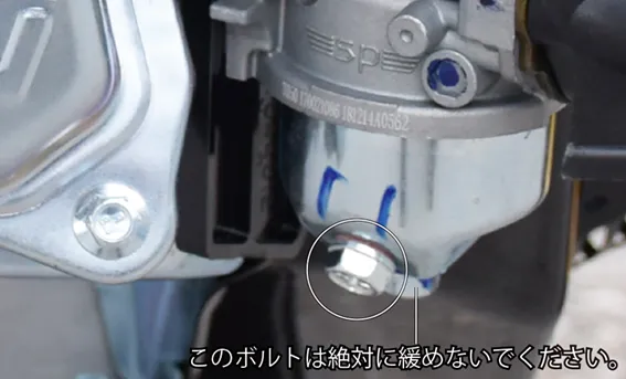 • 燃料タンクキャップは確実に締めてください。運転中にこぼれると火災の恐れがあります。