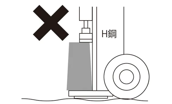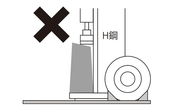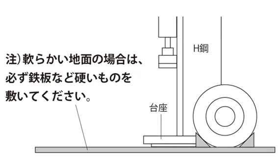 • 草地、砂利、その他柔らかい地面で使用しないでください。圧力をかけた時に本機が転倒したり、台座が破損したりして思わぬ事故につながる恐れがあります。