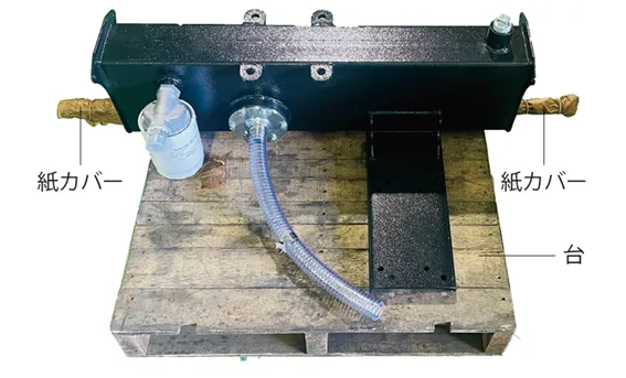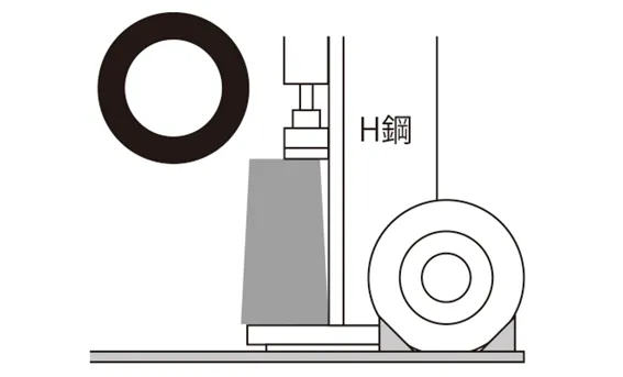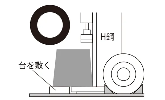 • 硬いコンクリートの地面もしくは、下に鉄板などを敷いた水平で安定した場所に設置してください。