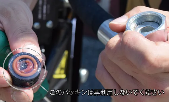 • 使用前にオイル漏れ、ネジの緩みや部品の欠落、ホースの亀裂・摩耗・破損等、各部に異常がないことを確認してください。
