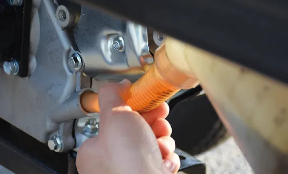 • 点検整備はエンジンが冷えてから行ってください。エンジン本体やマフラー部のほか点火プラグの温度も高くなっており、やけどの恐れがあります。