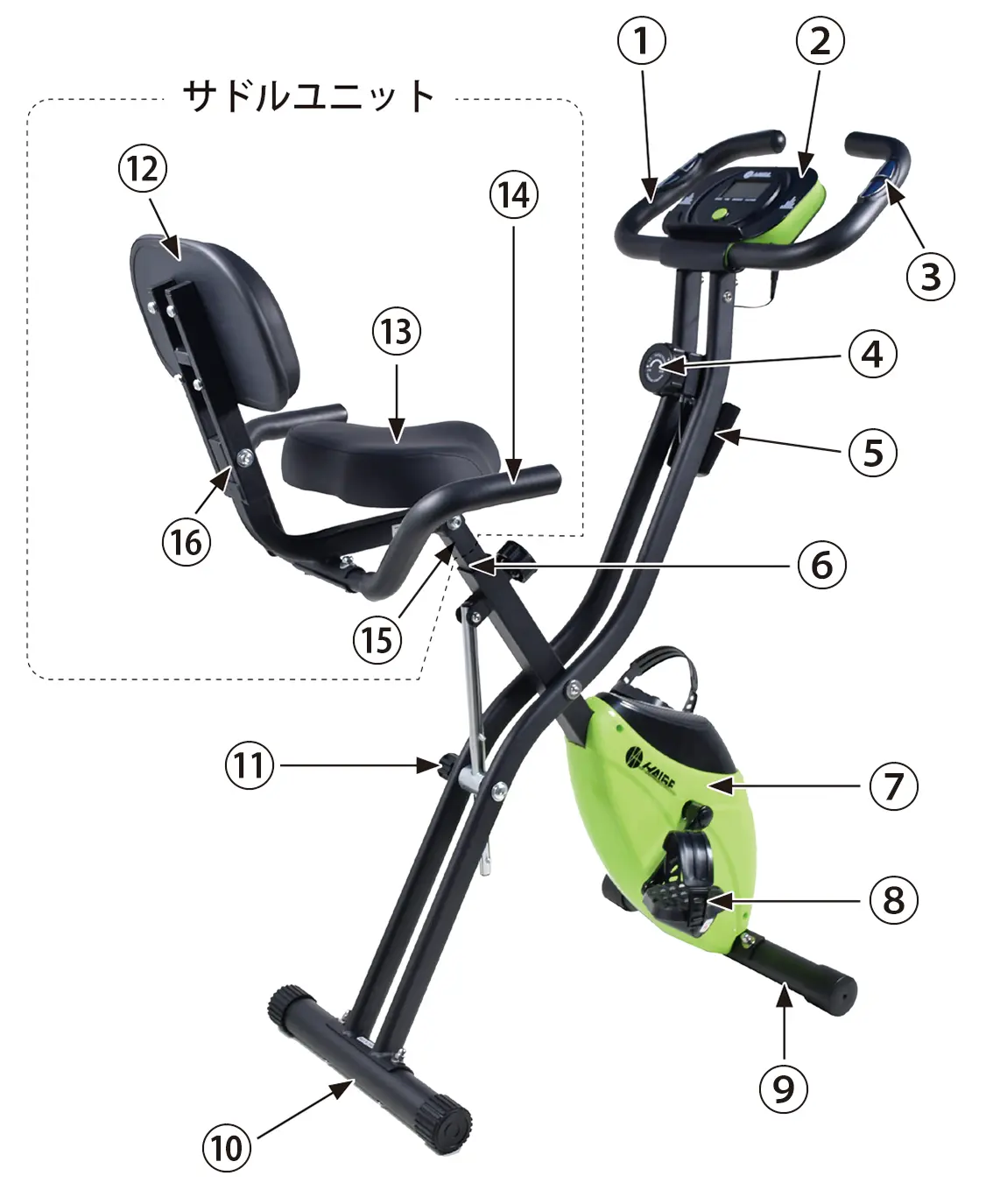 • 普段運動していない方は、フィットネスバイクの負荷を弱めでトレーニングをし、徐々に負荷を上げるようにしてください。