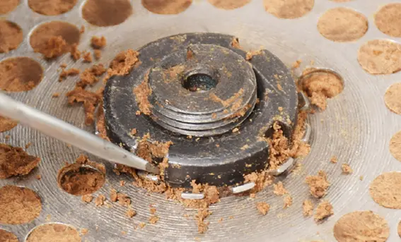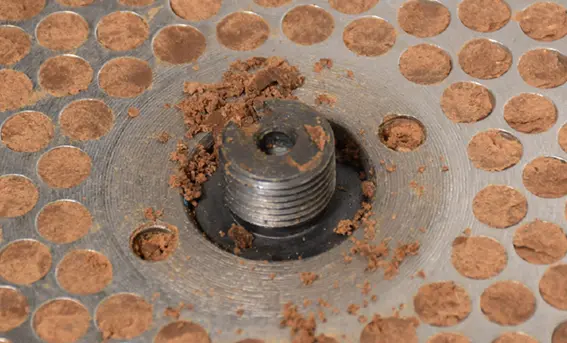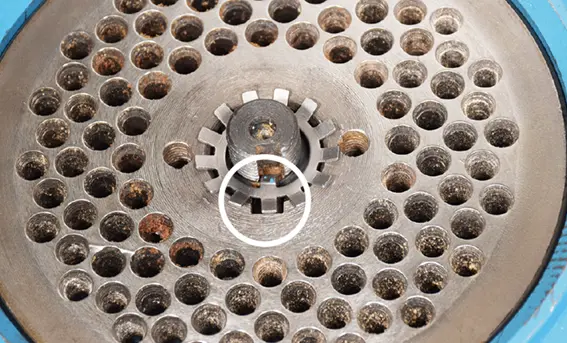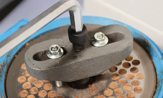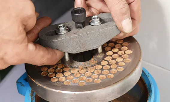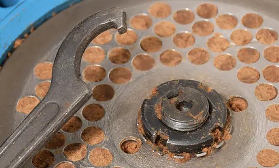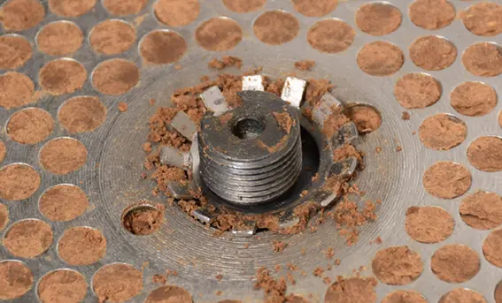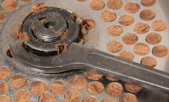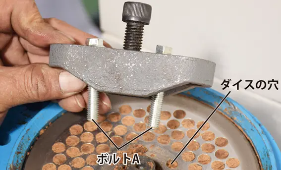 ペレタイジング孔の直径は6mmです。おが屑の大きさは6mmより小さくしてください。