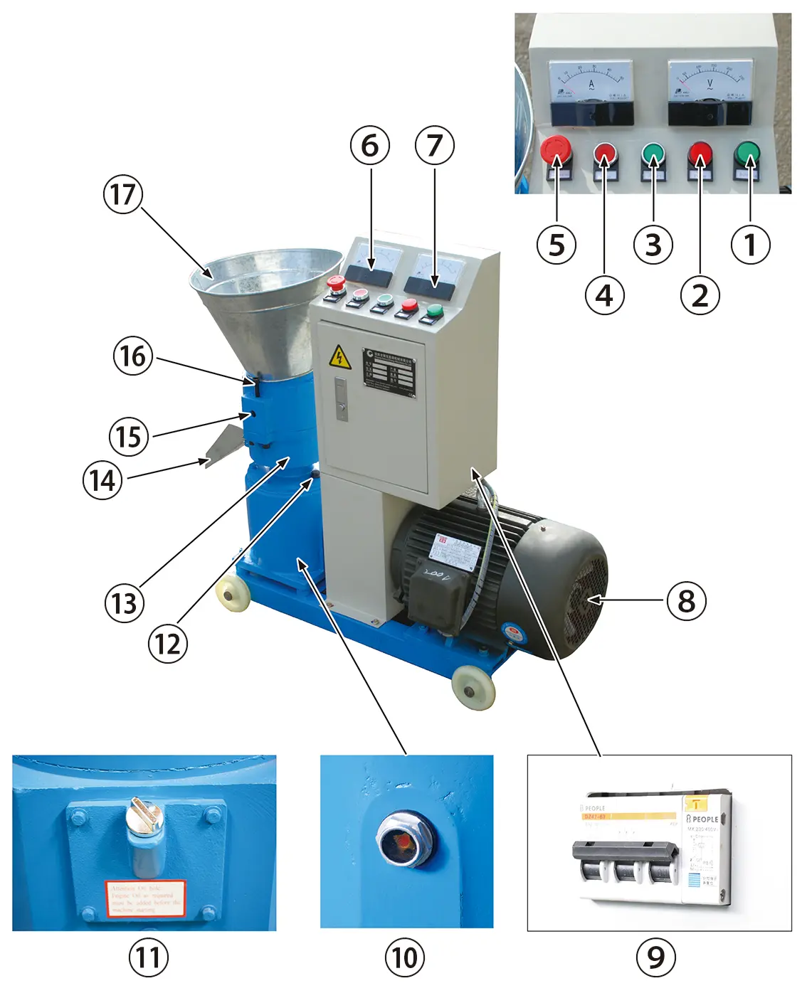 ●バインダー(結合剤)‥‥本製品は、バインダー(結合剤)がなくても、ペレタイジングが可能なように設計していますが、バインダーをお使いいただくことをお勧めします。バインダーを入れることで、ダイス、ローラーの寿命を伸ばすことができます。おすすめのバインダーは、コーンスターチやお米などのでんぷんです。