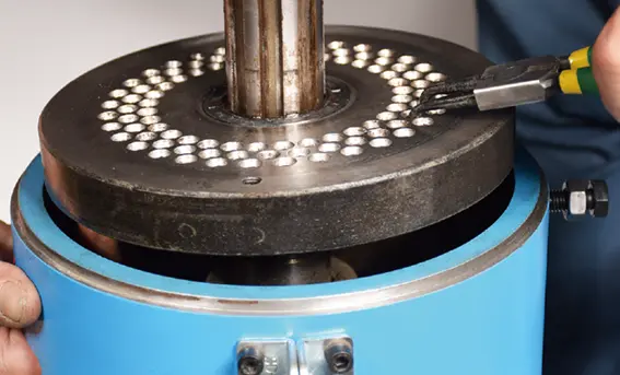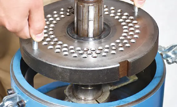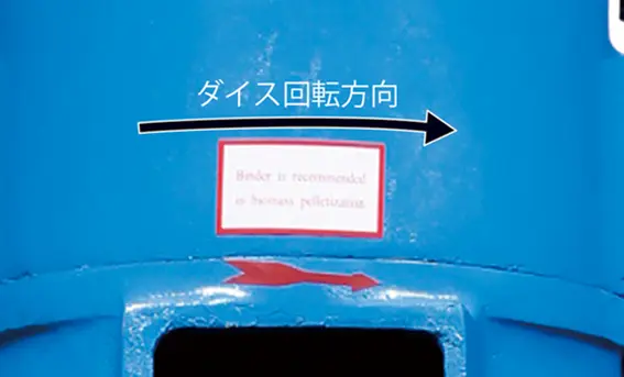 ペレタイジング孔の直径は6mmです。おが屑の大きさは6mmより小さくしてください。