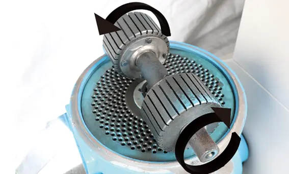 ●原料のミックス‥‥本製品は、単一原料だけでなく、違う種類の原料を混合したものも扱うことができます。ただし、石や鉄、他の硬い物質を原料に加えないでください。