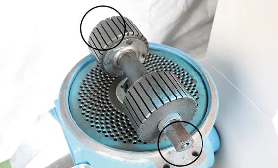 負荷(電流)が大きい、または大きくて振動する場合は、材料が大きいかまたは一度の投入量が多すぎる可能性があります。量を減らすか、細かくするか、またはその両方を行ってください。