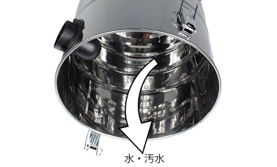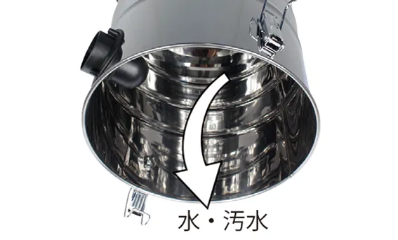 • オイルを含む汚水を吸引した場合は、定期的にタンクの汚水を捨てて洗浄してください。