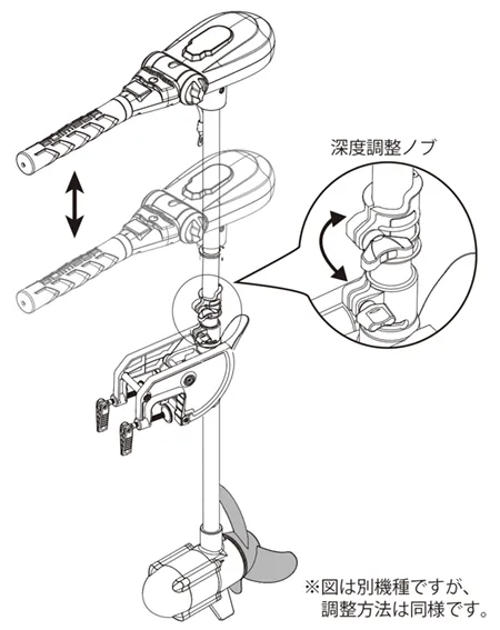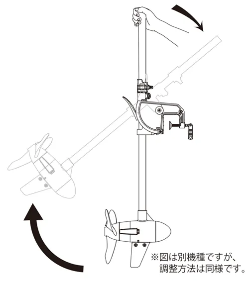 • エレクトリックトローリングモーターをチルトアップする際は、電源が切られていることを確認してください。