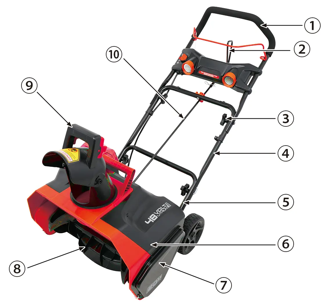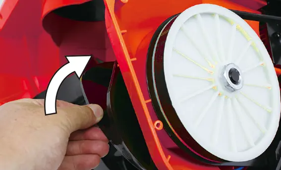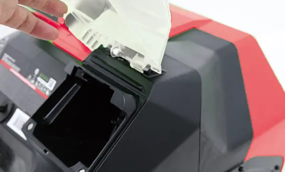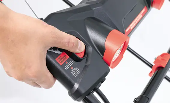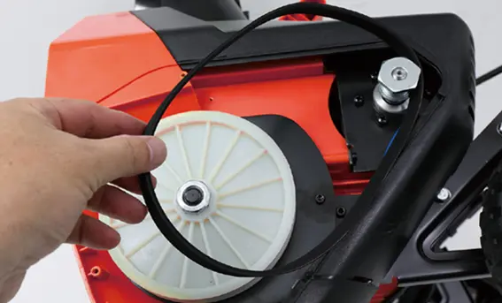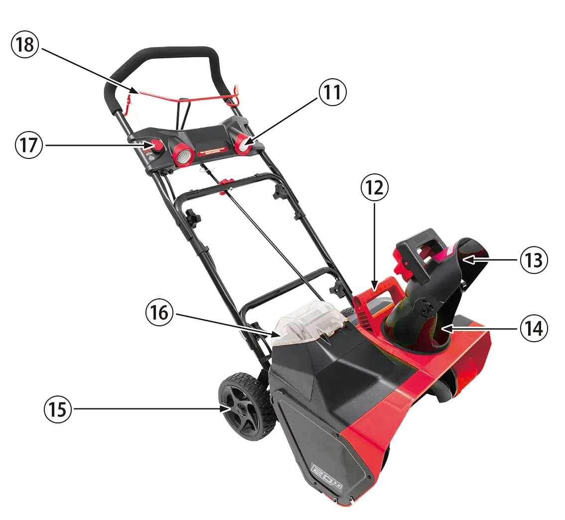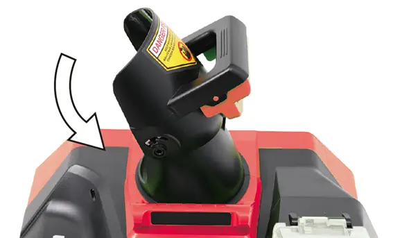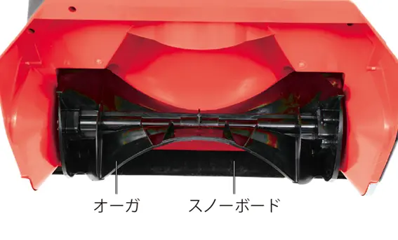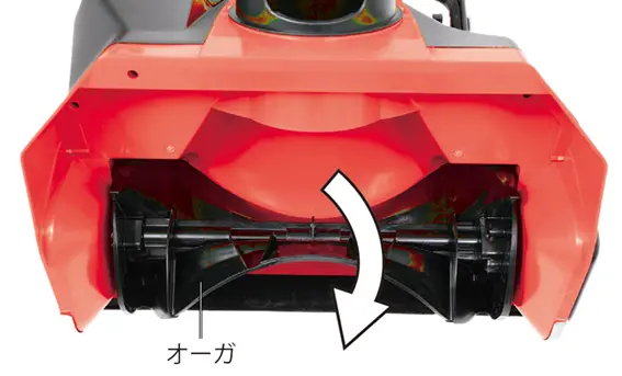 • オーガハウジングやシュータなどに詰まった雪を取除く時は、バッテリパックを取外し、誤って始動しないようにしたうえで、雪かき棒を使って取除いてください。