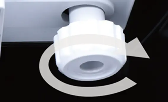 本体側面のソケットカバーを取外し、ペダルスイッチコネクタをしっかり挿込み、リングを回し、固定します。