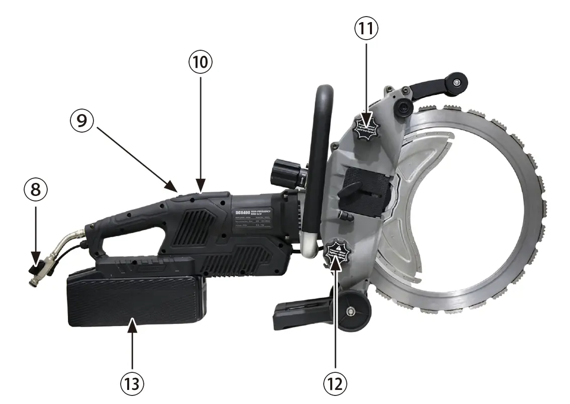 • 刃先が切り口にはさまったり何らかの理由で本機が止まった場合、スイッチを切って工具が完全に停止するまで本製品を動かさないで保持してください。工具が動いている間は、工具を切り口からはずしたり、本製品を後ろに引いたりしないでください。