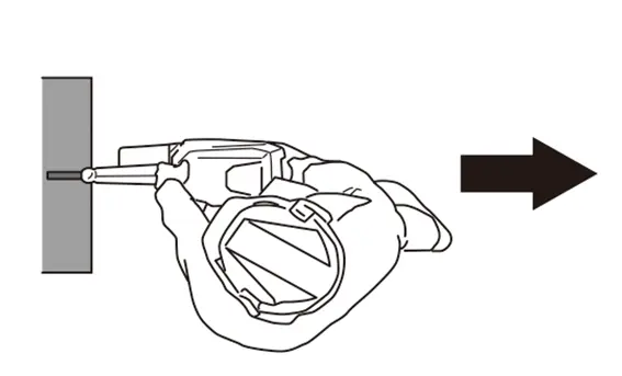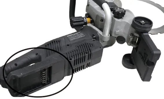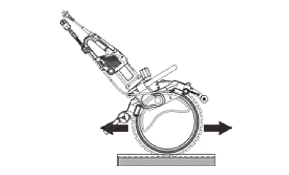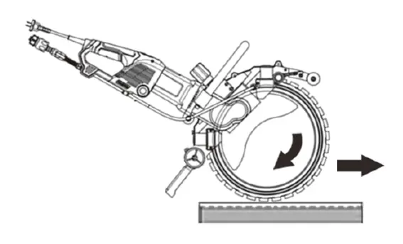 • 刃先が切り口にはさまったり何らかの理由で本機が止まった場合、スイッチを切って工具が完全に停止するまで本製品を動かさないで保持してください。工具が動いている間は、工具を切り口からはずしたり、本製品を後ろに引いたりしないでください。