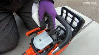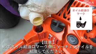 ※詳細は取扱説明書P.11の「ガイドバーとソーチェンの取付け」をご参照ください。