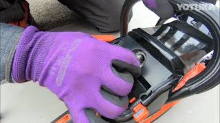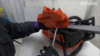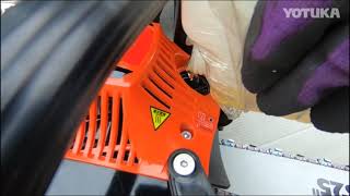 ※詳細は取扱説明書P.11の「ガイドバーとソーチェンの取付け」をご参照ください。